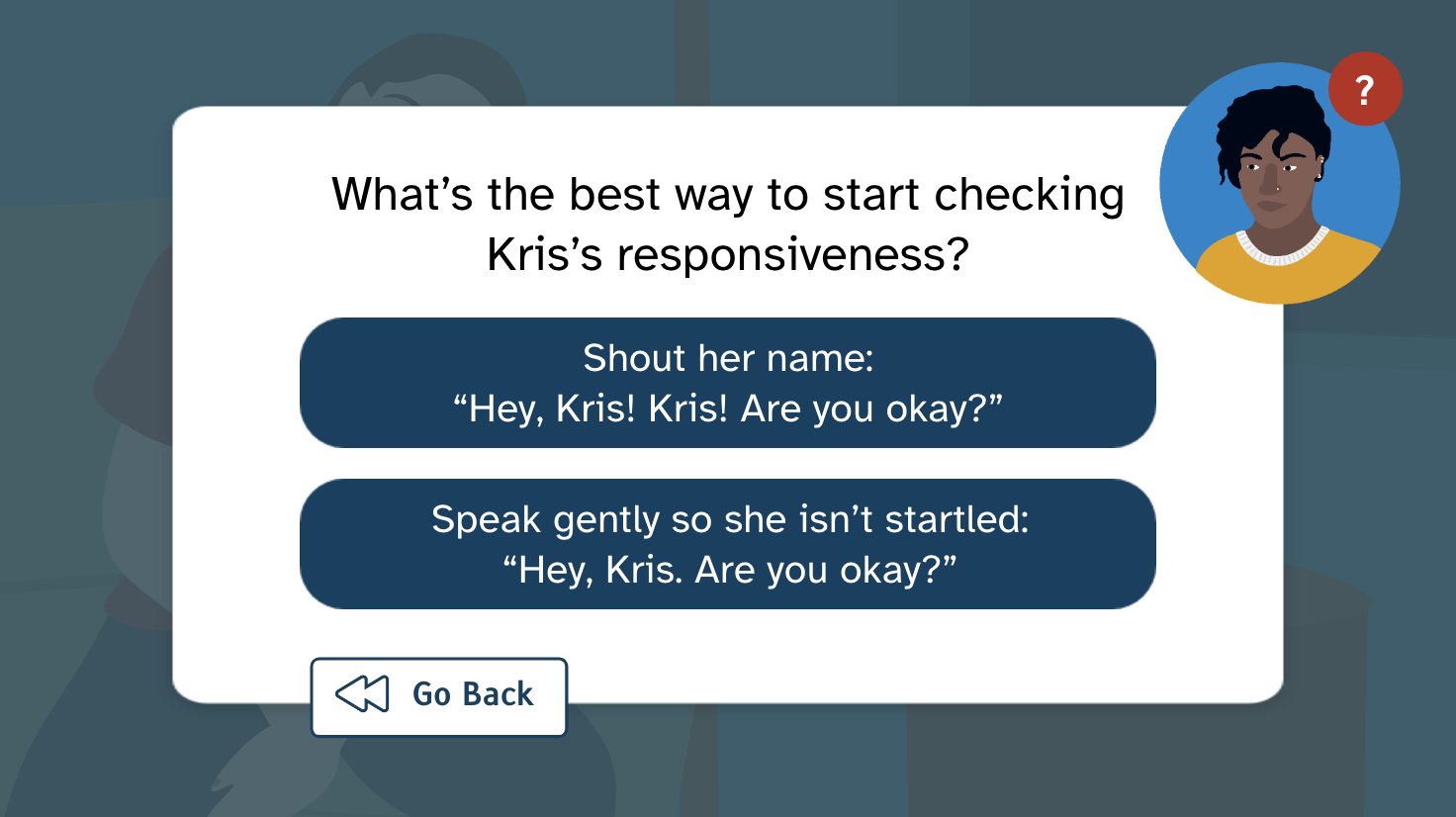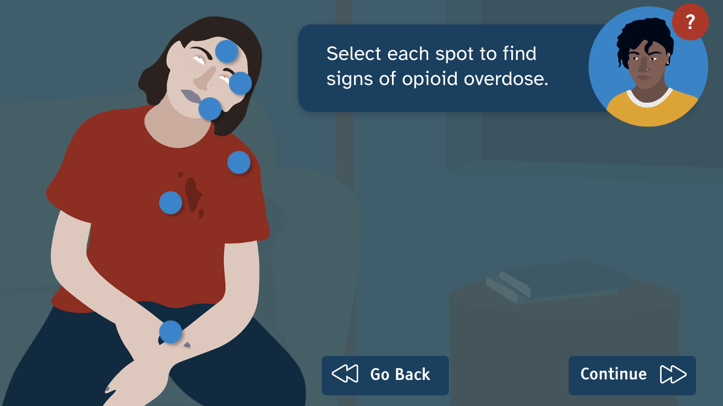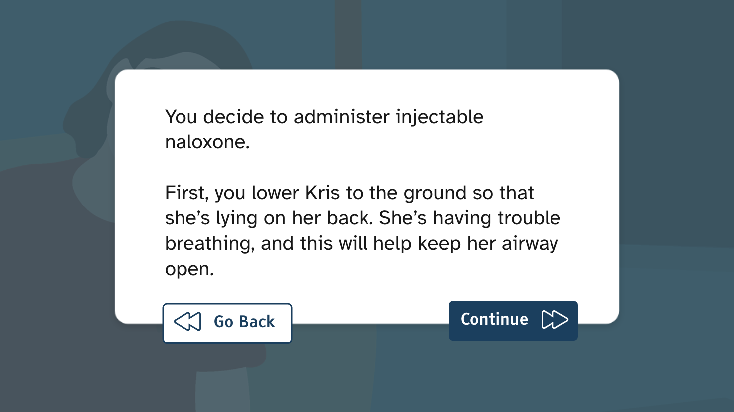 This scenario-based e-learning module guides new community service volunteers through a simulated opioid overdose response.