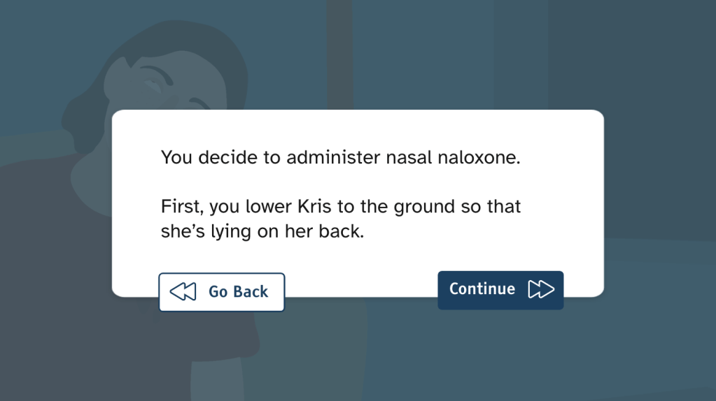 While some naloxone training resources do exist online, many of these are videos or text-based presentations with limited interactivity and no immersive or scenario-based components.