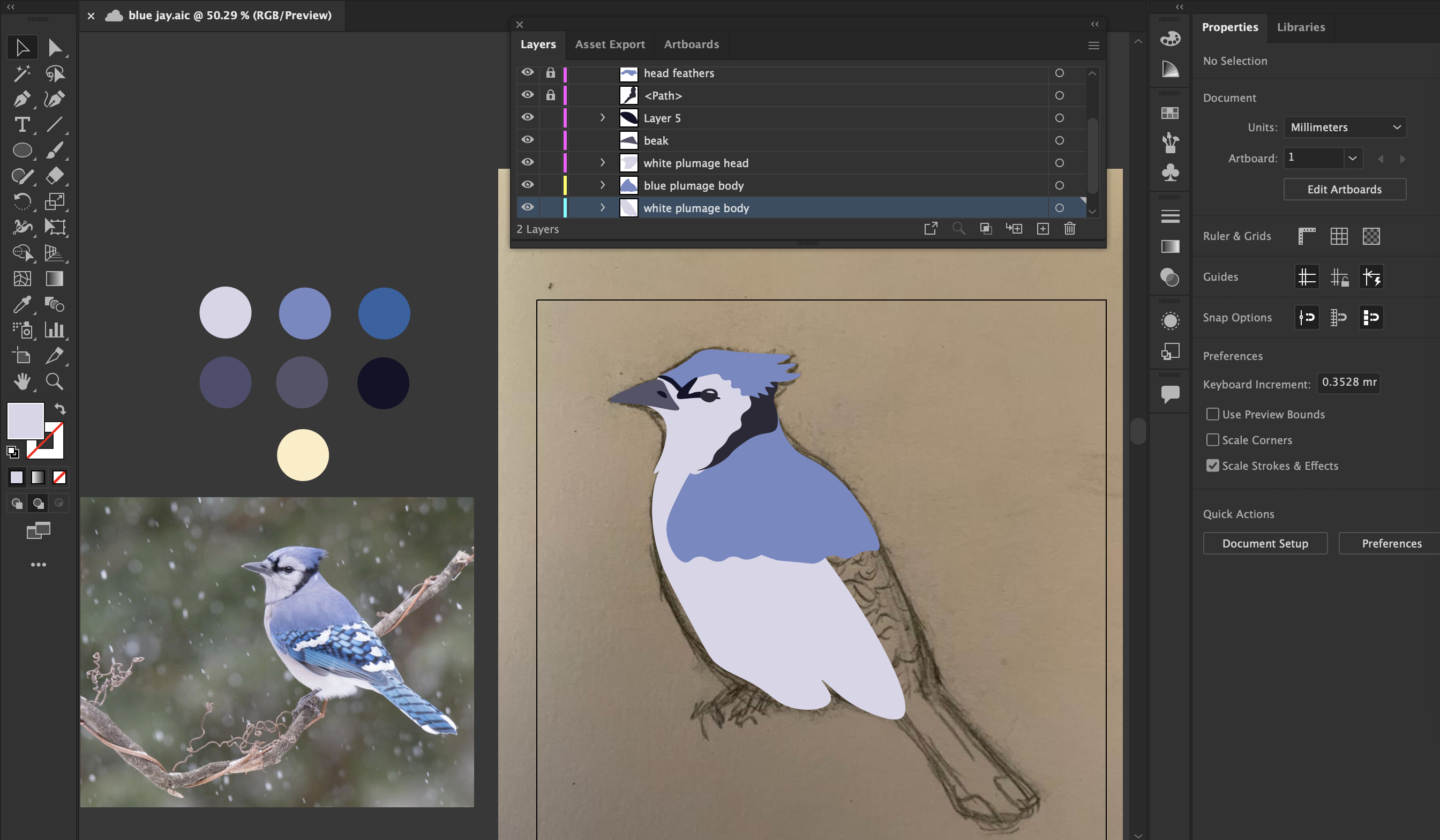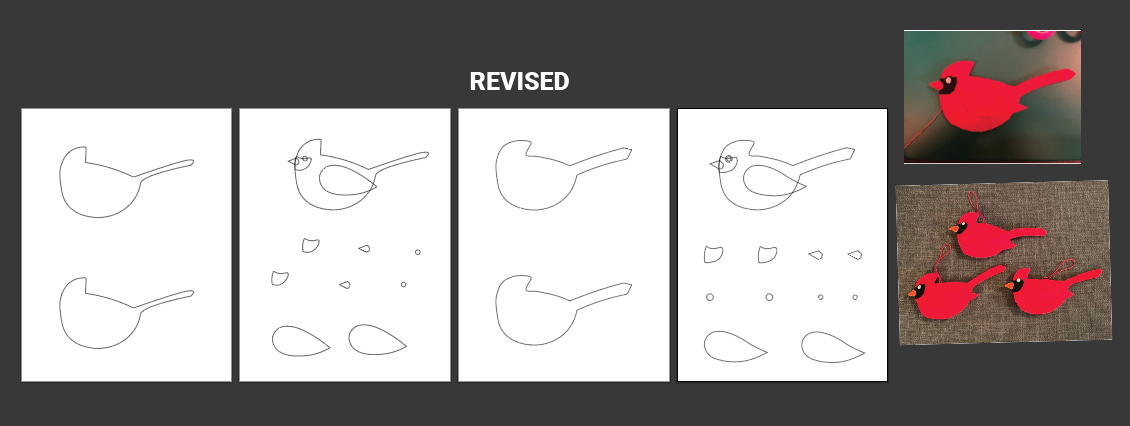 I loved my first cardinal, but I also saw areas that could be improved. I went back to Illustrator and made some adjustments, widening and curving some areas to get closer to the shape I wanted. Then I made a second cardinal and made some more adjustments. That template worked well, so I got on a roll, making three more as gifts for family. When other relatives saw the pictures, I got requests for two more.