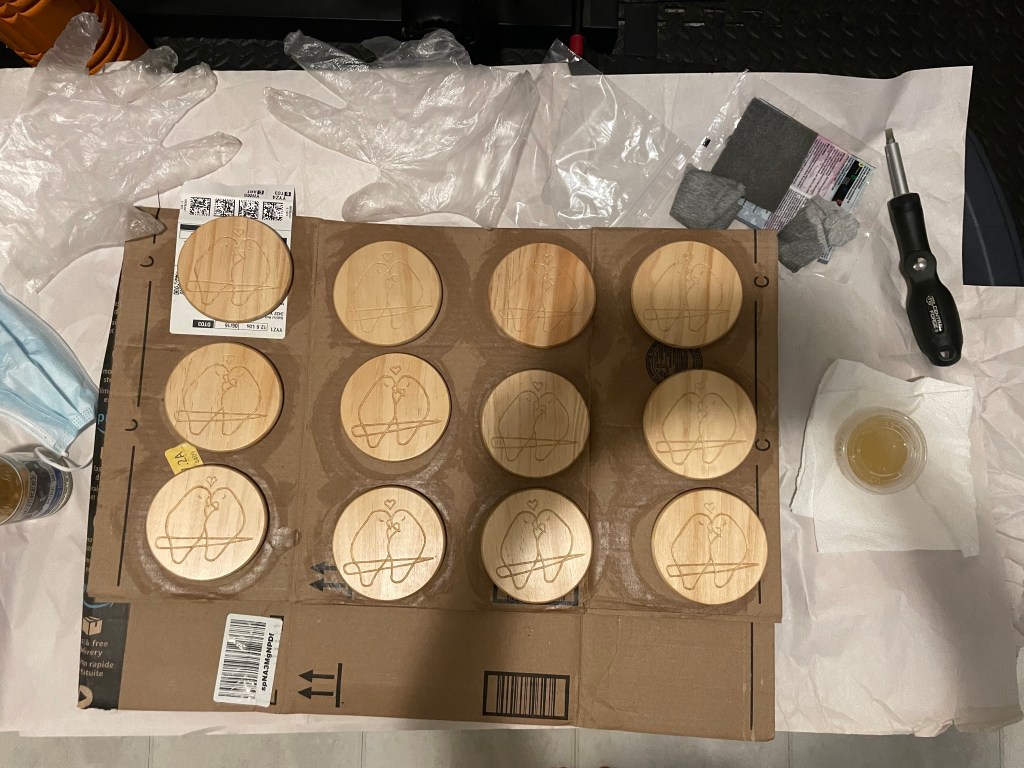 My partner then set about engraving and polishing the coasters, and I made the magnets.