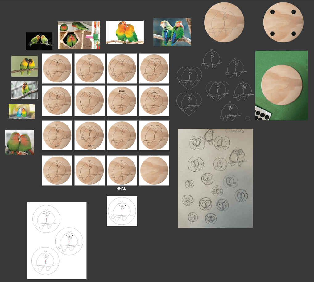 - For the coasters, I made a version that could be easily engraved (big lines, no tiny details, and no colour).